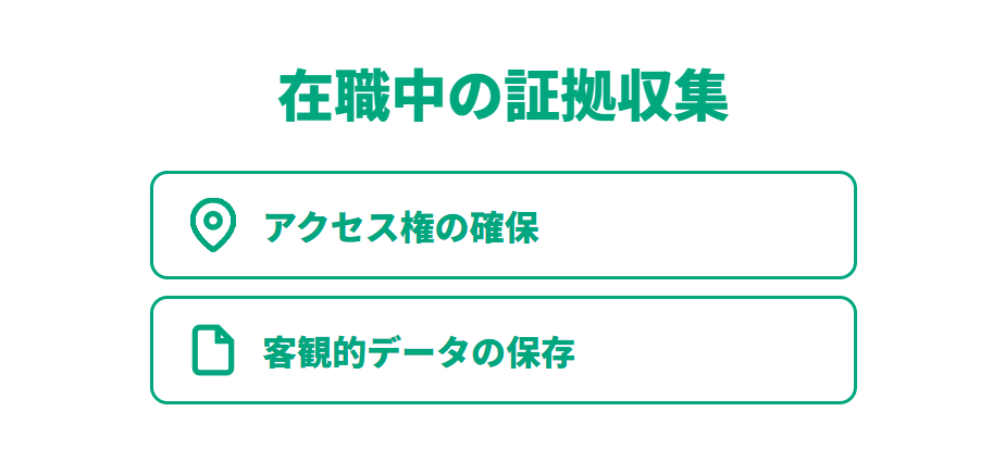 在職中であれば証拠となる情報に自分でアクセスしやすく、収集の選択肢も広いため、できる限り在職中に必要な資料を手元に確保しておくことが賢明です。特に、給与明細は毎月保管しておくことが基本です。